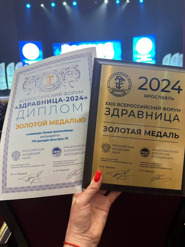 По итогам конкурса в номинациях «Лучшая грязелечебница», «Лучшая здравница по использованию природных лечебных факторов» санаторий был удостоен золотыми медалями.
