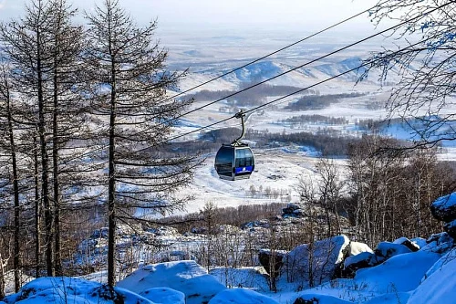 Подъем на единственном в РФ скоростном 8-местном подъемнике горнолыжного центра "Банное", расположенного у склонов этой горы.